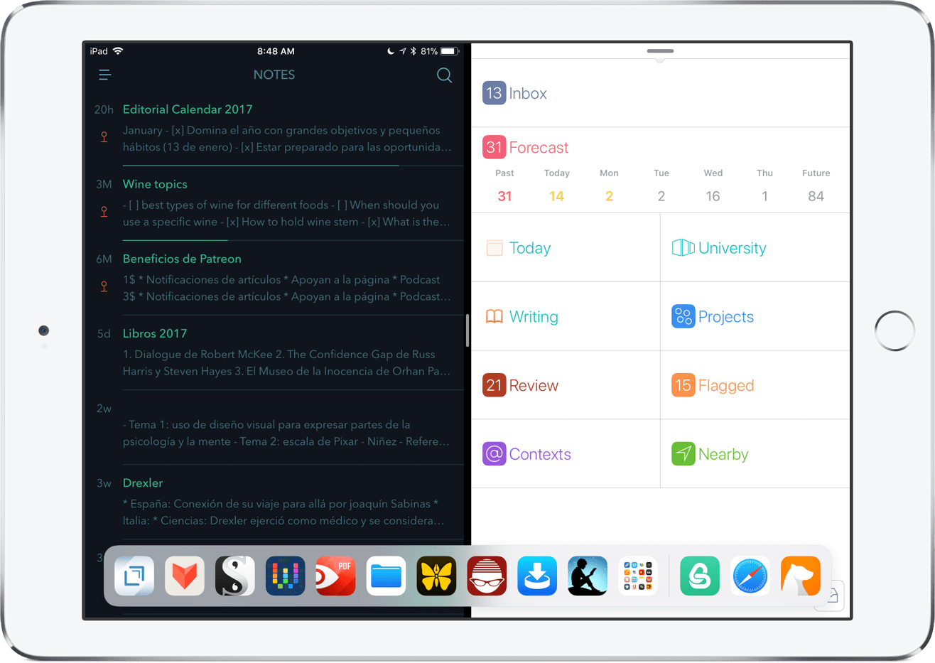 - Mi sistema terminó en el olvido. Ese fue mi mayor error. Cuando dejé de prestarle atención, era evidente que terminaría desorganizado. Como una casa, hay que limpiarla constantemente. Utilicé una app llamada Productive, cuyo objetivo es mantener el progreso de tus hábitos, un recordatorio para revisar Omnifocus todas las mañanas.